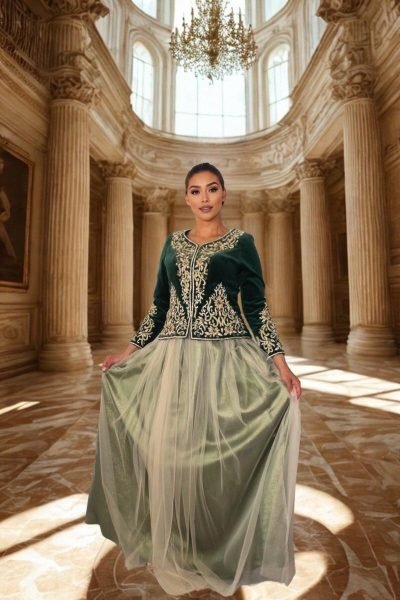 Pièce emblématique de l’ouest du Maghreb, la robe Karakou incarne l’élégance, la noblesse et la féminité.